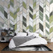 Ontdek ons moderne chevron foto behang met rustgevende tinten groen en beige. Dit grafische patroon is perfect om een eigentijdse touch aan je interieur toe te voegen, of het nu een woonkamer of een slaapkamer is.