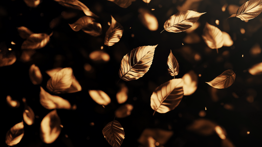 Alle gegevens bekijkenFoto Behang gouden bladeren | Glinsterende bladeren op zwarte achtergrond