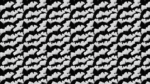 Alle gegevens bekijkenFoto Behang ginkgo | Witte ginkgo-patronen op een zwarte achtergrond