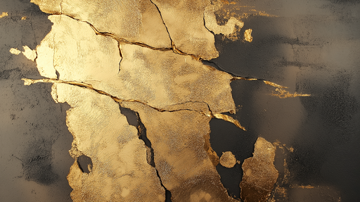 WonderMuralDeze unieke foto behang heeft een gedurfd ontwerp met gouden patronen verweven op een donkere achtergrond. De onregelmatige en glanzende barsten cr...
