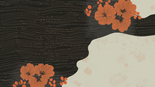 Foto Behang bloemen | Abstract patroon met oranje bloemen op een zwarte en crèmekleurige achtergrond