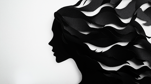 WonderMuralDeze unieke foto behang benadrukt een gestileerde vrouwelijke silhouet, uitgesneden in het zwart met vloeiende contouren die beweging en gratie opr...