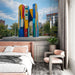 Ontdek dit prachtig gekleurde abstracte standbeeld, gelegen in een groene stedelijke ruimte. Dit artistieke meesterwerk maakt gebruik van geometrische vormen en een levendig palet van geel, blauw, rood en andere tinten om een indrukwekkende visuele impact te creëren. Perfect om een dynamisch tintje toe te voegen aan elk stedelijk ontwerp, integreert dit moderne beeldhouwwerk harmonieus in het omliggende landschap.