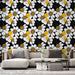 Foto Behang bloemen zwart en wit | Gestileerde bloemen met gele accenten op een zwarte achtergrond