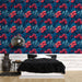 Deze behang heeft een spectaculair bloemenpatroon, bestaande uit levendige rode bloemen en kalmerende blauwe bladeren, allemaal op een donkere achtergrond die de rijkdom van de kleuren versterkt. De combinatie van deze tinten creëert een sfeer die zowel luxe als warm is, waardoor elke kamer verandert in een waar natuurlijk paradijs.