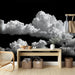 Deze Foto Behang wolken biedt een spectaculair uitzicht op witte wolken in reliëf op een dramatische zwarte achtergrond, waarbij de schoonheid en majesteit van de lucht wordt vastgelegd. Perfect voor gedurfde interieurdecoratie, voegt het een artistieke en surrealistische touch toe aan elke kamer.