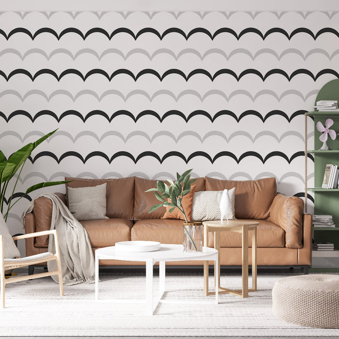 Deze Foto Behang heeft een zwart-wit boogpatroon en biedt een moderne en minimalistische esthetiek. Ideaal voor het creëren van een chique en schone sfeer in uw woonkamer, slaapkamer of kantoor.