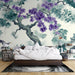 Ontdek ons shabby chic foto behang versierd met mooie bloemtakken en weelderig bladgroen. De levendige paarse bloemen, gemengd met zachte groene tinten, brengen een vleugje frisheid in uw interieur. De rustgevende achtergrond benadrukt elk detail en creëert een serene en elegante sfeer.