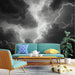 Dit boeiende foto behang toont een prachtig natuurverschijnsel met bliksem die een dichte en bewolkte lucht verlicht. De grijstinten en opvallende contrasten creëren een dramatische sfeer die de kracht van de natuur oproept. Dit sterke ontwerp is perfect voor gedurfde interieurs die een vleugje energie en mysterie willen toevoegen.