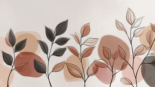 WonderMuralDenne tapeten tilbyr et moderne og minimalistisk design, som fremhever delikate blader understreket av svarte linjer på en bakgrunn av abstrakte fo...