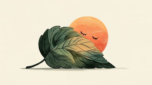 WonderMuralOppdag vår unike Fototapet som kombinerer natur og ro, og fremhever et stort grønt blad som ser ut til å beskytte en myk oransje sol med lukkede øy...