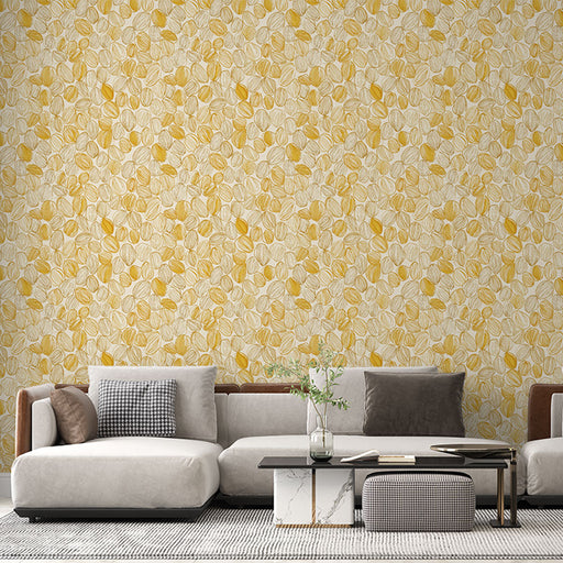 WonderMuralVår Fototapet har et elegant mønster av stiliserte blader i nyanser av gult og hvitt, og skaper en varm og innbydende atmosfære. Hvert blad er nøye...