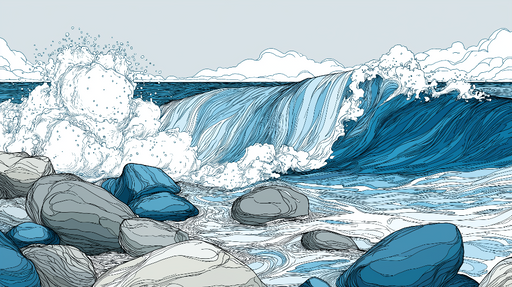 WonderMuralDette fototapetet viser en dynamisk bølge, fanget i en kunstnerisk stil, der nyanser av blått og hvitt forvandler en klassisk maritim scene til et ...