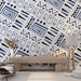 Denne blå geometriske Tapet gir en moderne og dristig touch til ditt interiør. Med sine abstrakte mønstre av labyrinter og bølgede linjer, tilbyr den en moderne og tiltalende estetikk.