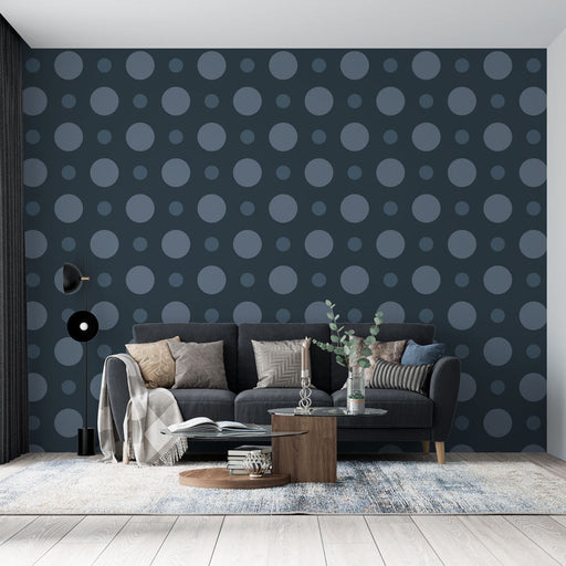 Studio SamaForbedre interiøret ditt med vår mural tapet med prikker, kjennetegnet av et elegant mønster av marineblå og grå prikker. Perfekt for å skape en mo...