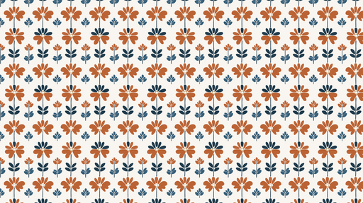 Vis fulle detaljerFargerik blomstermønster | Rød, hvit og oransje blomstermønster på midnattsblå bakgrunn