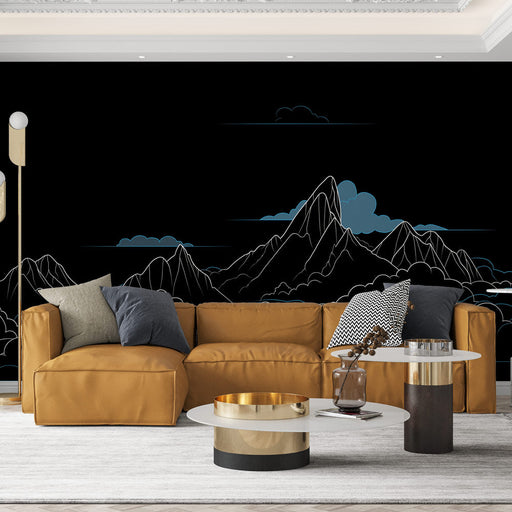 WonderMuralOppdag vår tapet inspirert av fjellandskap, med herlige fjellsilhuetter i hvite linjer, som står frem mot en dyp svart bakgrunn. Berøringer av himm...