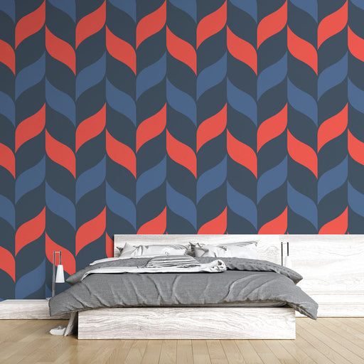 Vis fulle detaljerFototapet geometrisk | Blått og rødt bølgemønster