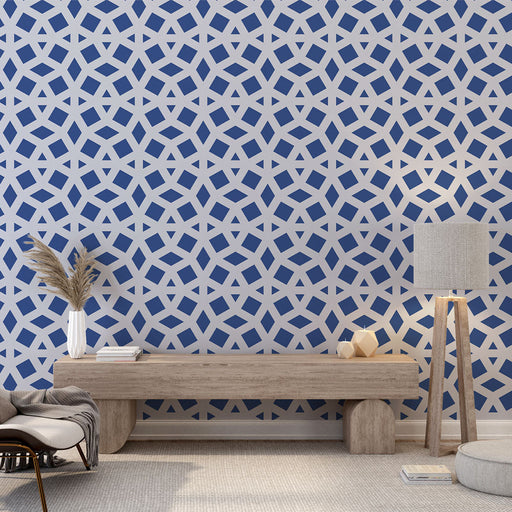 Studio SamaOppdag vår geometriske fototapet med blå og hvite mønstre, ideell for å legge til et snev av modernitet og eleganse til interiøret ditt. Det gjenta...