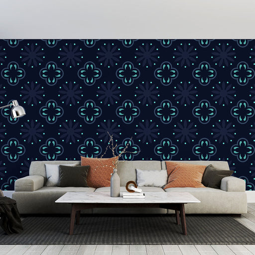 Vis fulle detaljerMural tapet floral | Blå geometrisk mønster