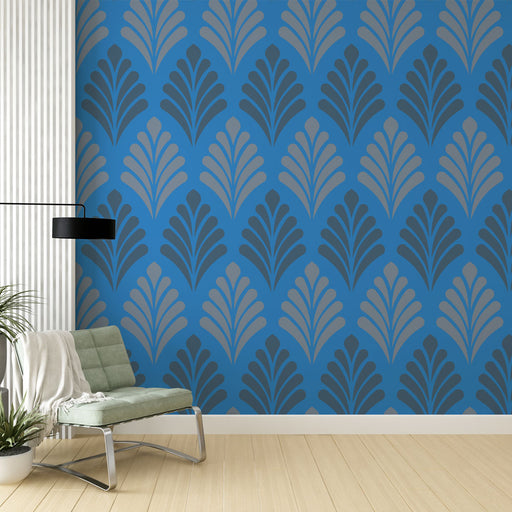 Studio SamaLegg til et retro preg på rommet ditt med vår Art Deco Mural Wallpaper inspirert av marineblå bølgemønstre. Ideell for et sofistikert oppholdsrom e...