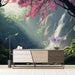 Fototapet foss | Frodig landskap med foss og rosa blomster