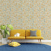 Blomstermural tapet | Gul og grønt blomstermønster på lys bakgrunn