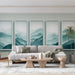 Vår fototapet tilbyr en praktfull representasjon av stiliserte fjell, innhyllet i nyanser av grønt og blått. Dette subtile designet vekker roen i naturlige landskap samtidig som det tilfører en moderne touch til interiøret ditt. De myke gradientene og elegante silhuettene skaper en avslappende atmosfære, perfekt for oppholdsrom eller kontorer.