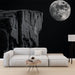 Dette fengslende fototapet har et mystisk månelandskap hvor en mørk stein står under det sterke måneskinnet. De detaljerte teksturene av steinen, fremhevet av sterke kontraster, skaper en atmosfære som er både dramatisk og beroligende. Den svarte bakgrunnen forsterker denne effekten, og gir en følelse av dybde og intimitet.