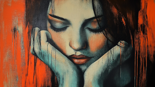 WonderMuralDette fengslende fototapetet har et portrett av en kvinne som er fordypt i tanker, med en dristig og levende fargepalett. Nyanser av oransje blande...