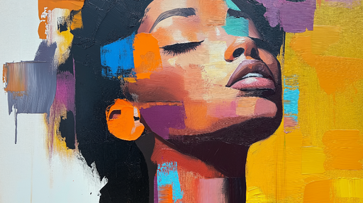 WonderMuralDette fengslende fototapetet har et abstrakt portrett av en kvinne, skapt med levende farger og dristige penselstrøk. Nyansene av blått, oransje, l...