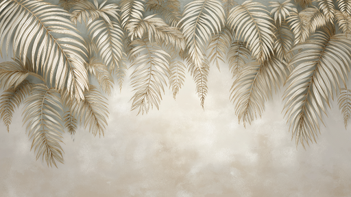 WonderMuralDette luksuriøse fototapetet har et vakkert mønster av stiliserte palmetrær i varme kobber- og beige toner, supplert med delikate blader. Den harmo...