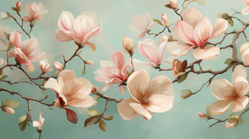 WonderMuralOppdag vår vakre fototapet som viser et overdådig motiv av blomstrende magnolia, delikat malt i myke nyanser av rosa og krem. Den beroligende paste...