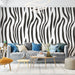 Legg til et snev av eksotisme til rommet ditt med vår svart-hvite sebra tapetmaleri. Dette dristige og elegante mønsteret er perfekt for å skape en dynamisk atmosfære i ethvert rom, enten det er stue eller soverom.