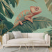 Vår fototapet har en iøynefallende kamelon som sitter på et tropisk blad, omgitt av frodig vegetasjon. De pastellfargede og fine detaljene av faunaen bringer en eksotisk og livlig touch til interiøret ditt, og skaper en dynamisk kontrast med de store grønne bladene som gjenspeiler det.