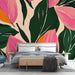 Dette livlige tapet har et slående botanisk design, som blander mørkegrønne blade med accenter i rosa og orange. De organiske former og bløde teksturer fremkalder en tropisk og varm atmosfære, perfekt til at bringe en livlig berøring til ethvert rum.