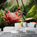 Transformere ditt rom med vår tropiske fototapet med en praktfull eksotisk fugl som sitter på en frodig blomst. De levende fargene og slående detaljene i den tropiske vegetasjonen bringer en fengslende og beroligende jungelatmosfære til ethvert rom.