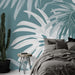 Fototapet i blågrønn | Elegant mønster av hvite tropiske blader
