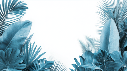 Vis fulle detaljerFototapet teal blå | Hvite tropiske blader på blå bakgrunn
