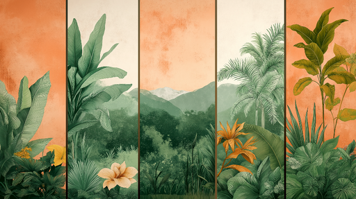Den tropiske samlingen forvandler ethvert rom til et tilfluktssted for avslapning og friskhet. Designene i denne samlingen er inspirert av tropisk natur, og bringer en touch av flukt og friskhet til interiøret ditt. Den visuelle virkningen av disse tapetene skaper en dynamisk og revitaliserende atmosfære, ideell for stuer, soverom eller kontorer som leter etter en unik atmosfære.