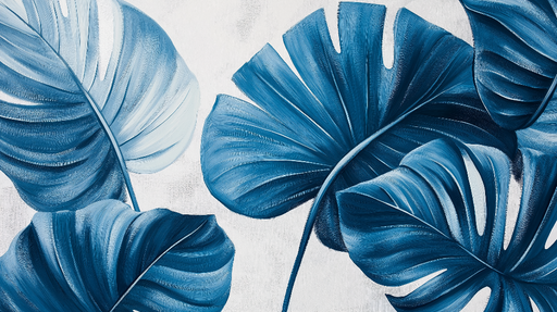 Vis fulle detaljerFototapet teal blå | Elegante tropiske blader i nyanser av blått og krem