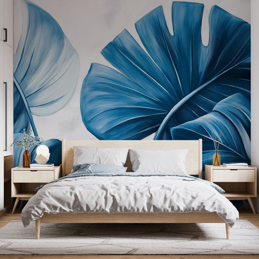 WonderMuralDette praktfulle fototapetet har et fengslende design av tropisk løvverk i marineblått, som skiller seg ut mot en myk beige bakgrunn. Bladene, med ...