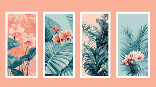WonderMuralDette praktfulle fototapetet har et sett med fire paneler som illustrerer delikate orkideer og frodige tropiske blader. Tonene av korall og grønn b...