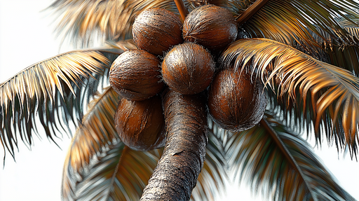 WonderMuralDette fototapetet gir en tropisk touch med et nærbilde av kokosnøtter hengende fra en elegant palme. De varme og gyldne tonene i kokosnøttene bland...