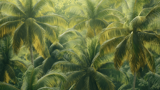Vis fulle detaljerFototapet palmetrær | Frodig tetthet av grønne palmetrær i en tropisk setting
