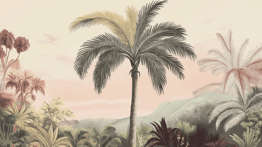 WonderMuralOppdag vår vakre fototapet som viser en tropisk scene med myke nyanser. Dette designet fremhever majestetiske palmetrær som stolt står omgitt av fr...