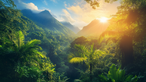 Art'loloOppdag vår tapetjungel som skildrer et frodig tropisk landskap med en strålende soloppgang. Perfekt for å skape en naturlig og beroligende atmosfær...