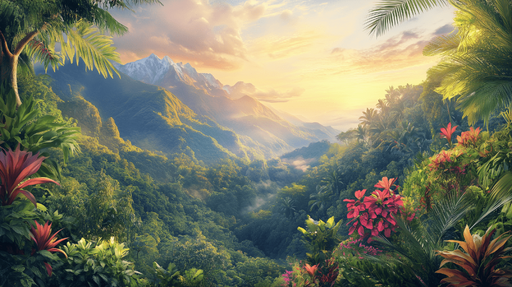 Art'loloTransformere ditt rom med vår tropisk landskapsmural tapet, som fanger den majestetiske skjønnheten til fjellene ved soloppgang. Denne immersive sc...