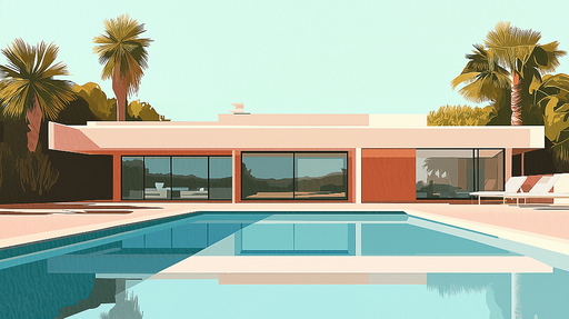 WonderMuralOppdag vår tapet som representerer et moderne hus med et sjarmerende svømmebasseng. Den stiliserte designen viser frem moderne arkitektur, omgitt a...