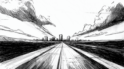WonderMuralDette fototapetet har en svart-hvitt illustrasjon av et moderne bylandskap, som viser en gate med bygninger av ulike geometriske former. De nøye de...